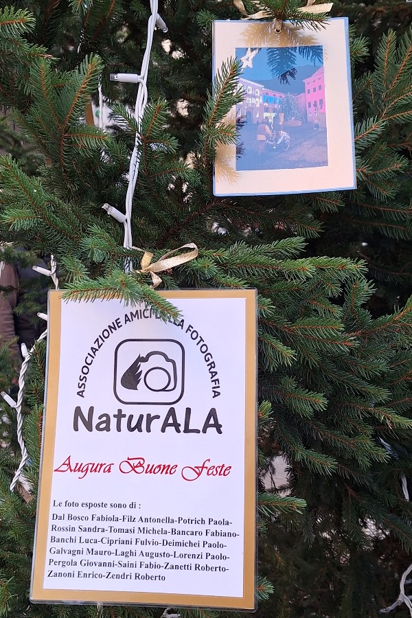Albero con foto natalizie ed invernali di NaturALA, in Piazzetta Cantore